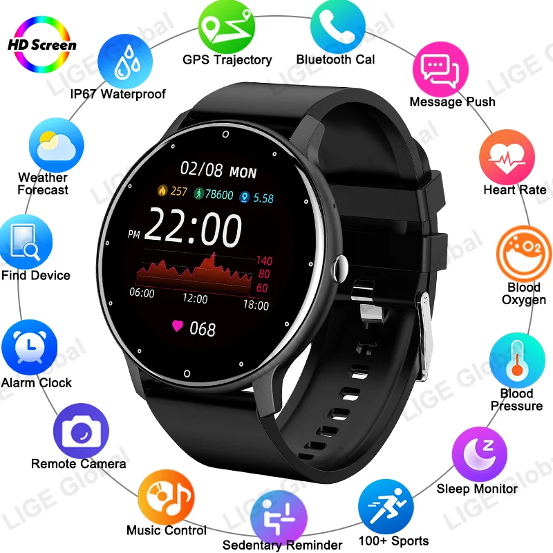 LIGE Smart Watch Sports Fitness Tracker Sleep Health Monitor Wireless Call Notification Weather AI Voice Waterproof Smartwatch