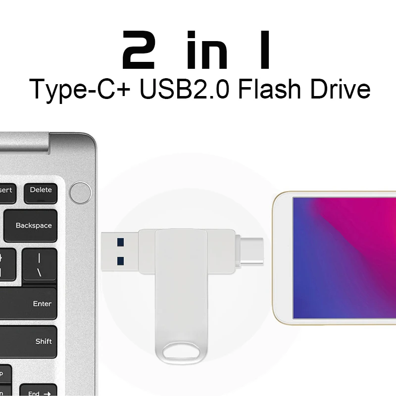 2TB High Speed PenDrive USB Flash Drive Metal Pendrive Type-C Swapable Port
